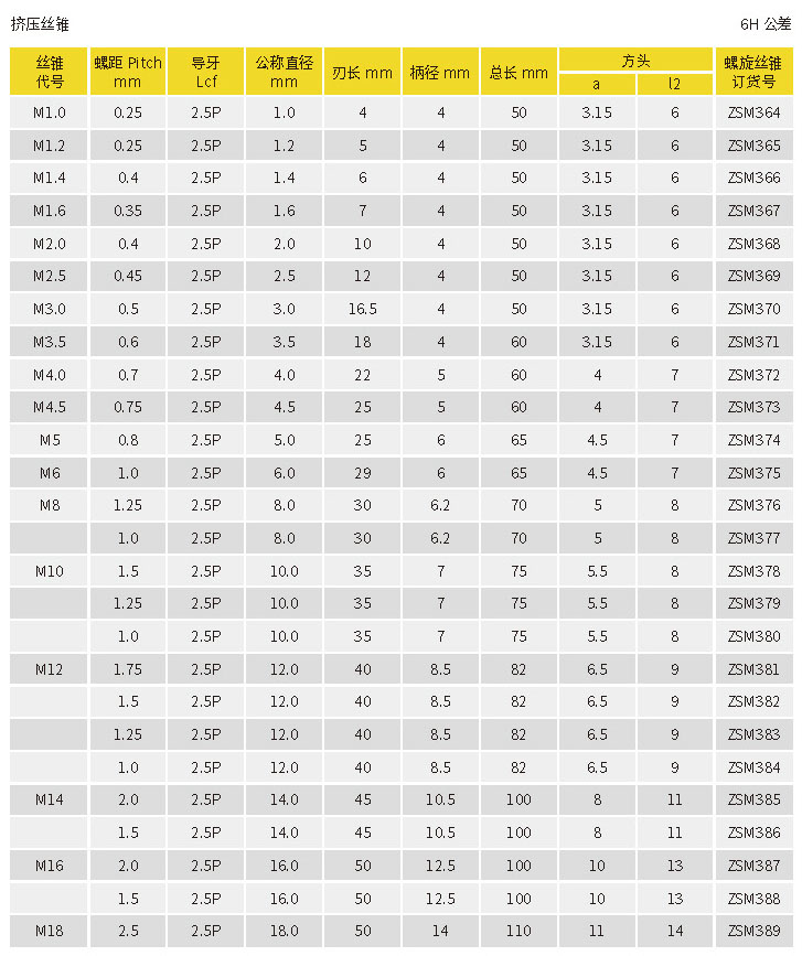 > 钨钢挤压丝锥